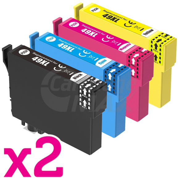 8 Pack Generic for Epson 49XL Black High Yield Ink Cartridges Combo C13T10F192 - C13T10F492 [2BK, 2C, 2M, 2Y]