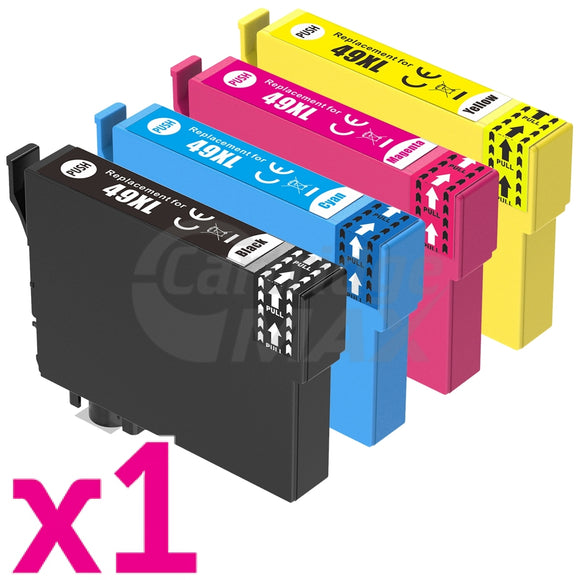 4 Pack Generic for Epson 49XL High Yield Ink Cartridges Combo C13T10F192 - C13T10F492 [1BK, 1C, 1M, 1Y]