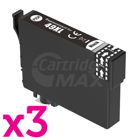 3 x Epson 49XL Generic Black High Yield Ink Cartridge C13T10F192