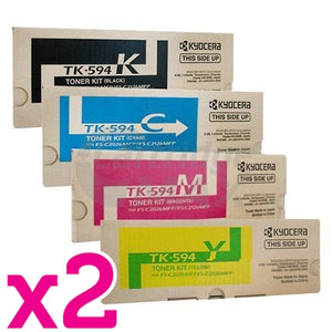2 sets of 4 Pack Original Kyocera TK-594 Toner Cartridges FS-C2026MFP, FS-C2126MFP, FS-C2526MFP, FS-C2626MFP, FS-C5250DN, M-6026CDN, M-6526CDN, P-6026CDN [2BK,2C,2M,2Y]