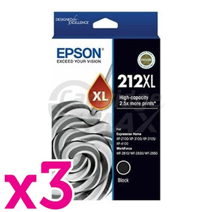 3 x Epson 212XL Genuine Black High Yield Ink Cartridge C13T02X192